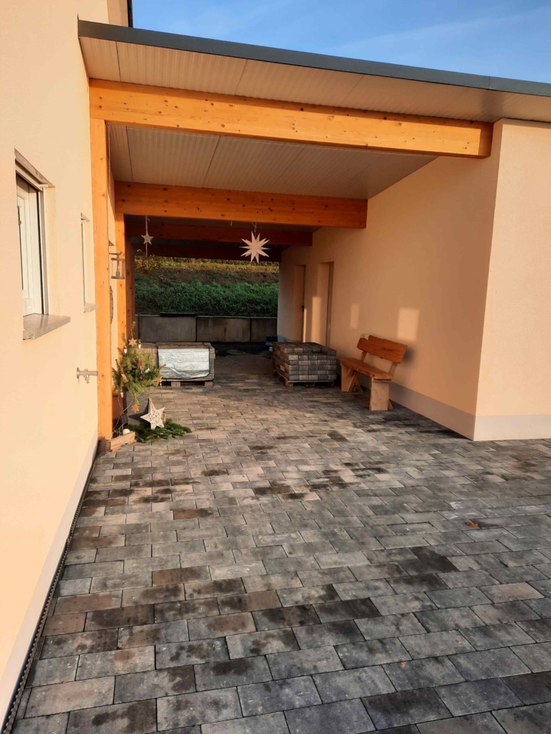 - Dezember 2024: Die Erdarbeiten und auch die Bodenplatte sind seit Anfang Dezember fertiggestellt (neue Fotos in der Galerie). Der Stelltermin für das neue Haus ist für Mitte/Ende Februar 2025 geplant.