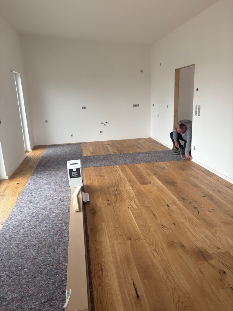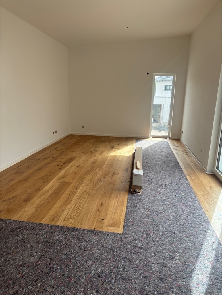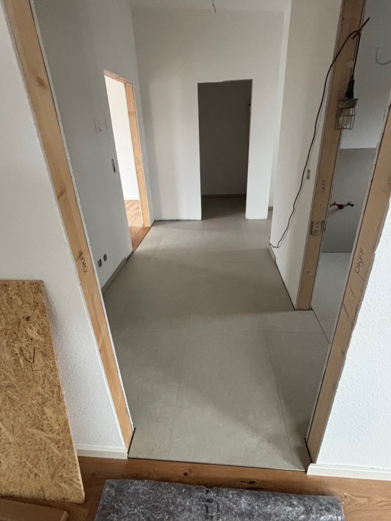 - November 2025: Der schlüsselfertige Ausbau nähert sich der Fertigstellung. Holzböden und großformatige Fliesen verlegt. Als nächstes erfolgt die Montage der Innentüren. Neue Fotos in der Galerie.